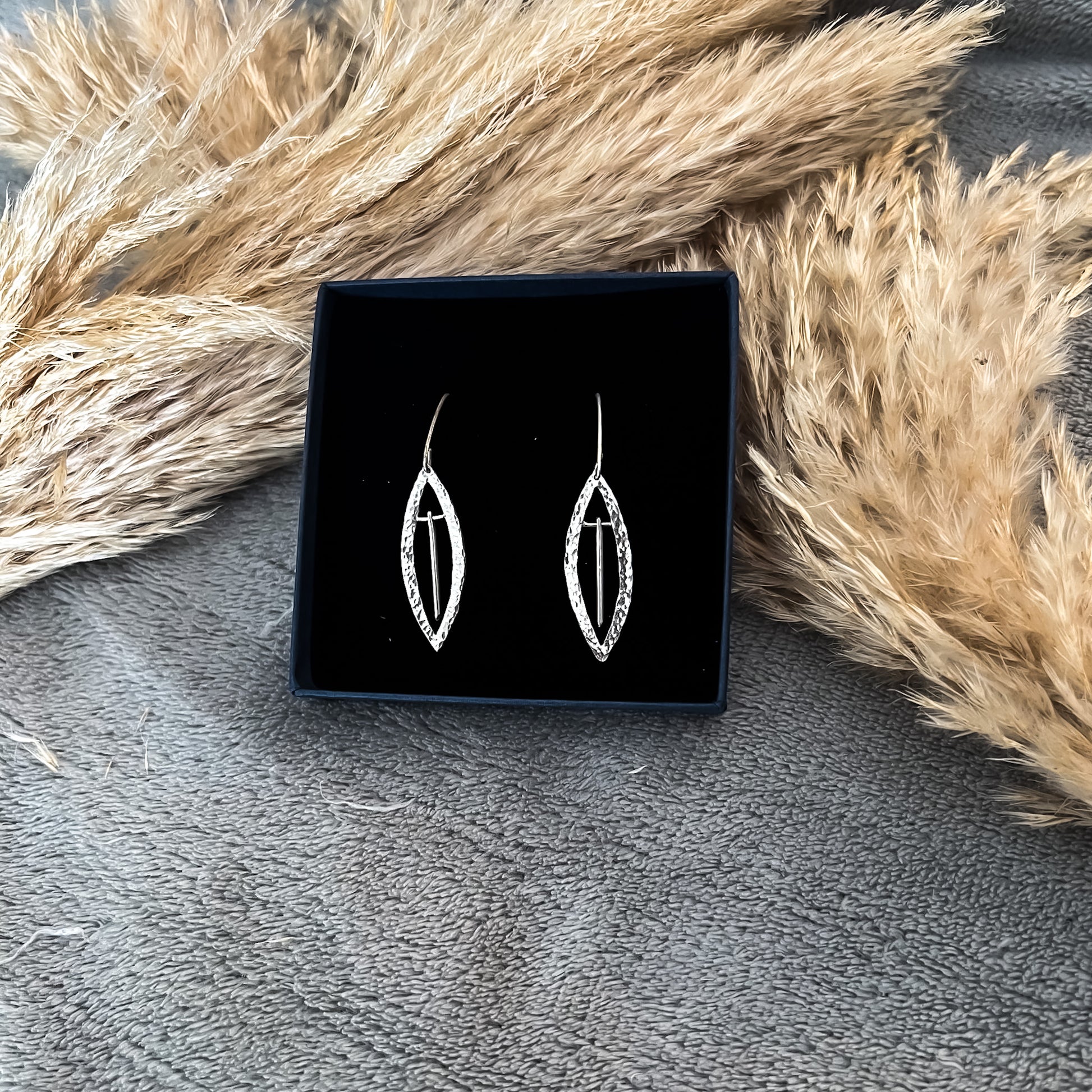 - Bijou entièrement fait main à partir de fil d'argent pour les crochets et d'une plaque d'agent martelé et d'un morceau de fil d'argent qui se déplace librement pour la boucle.