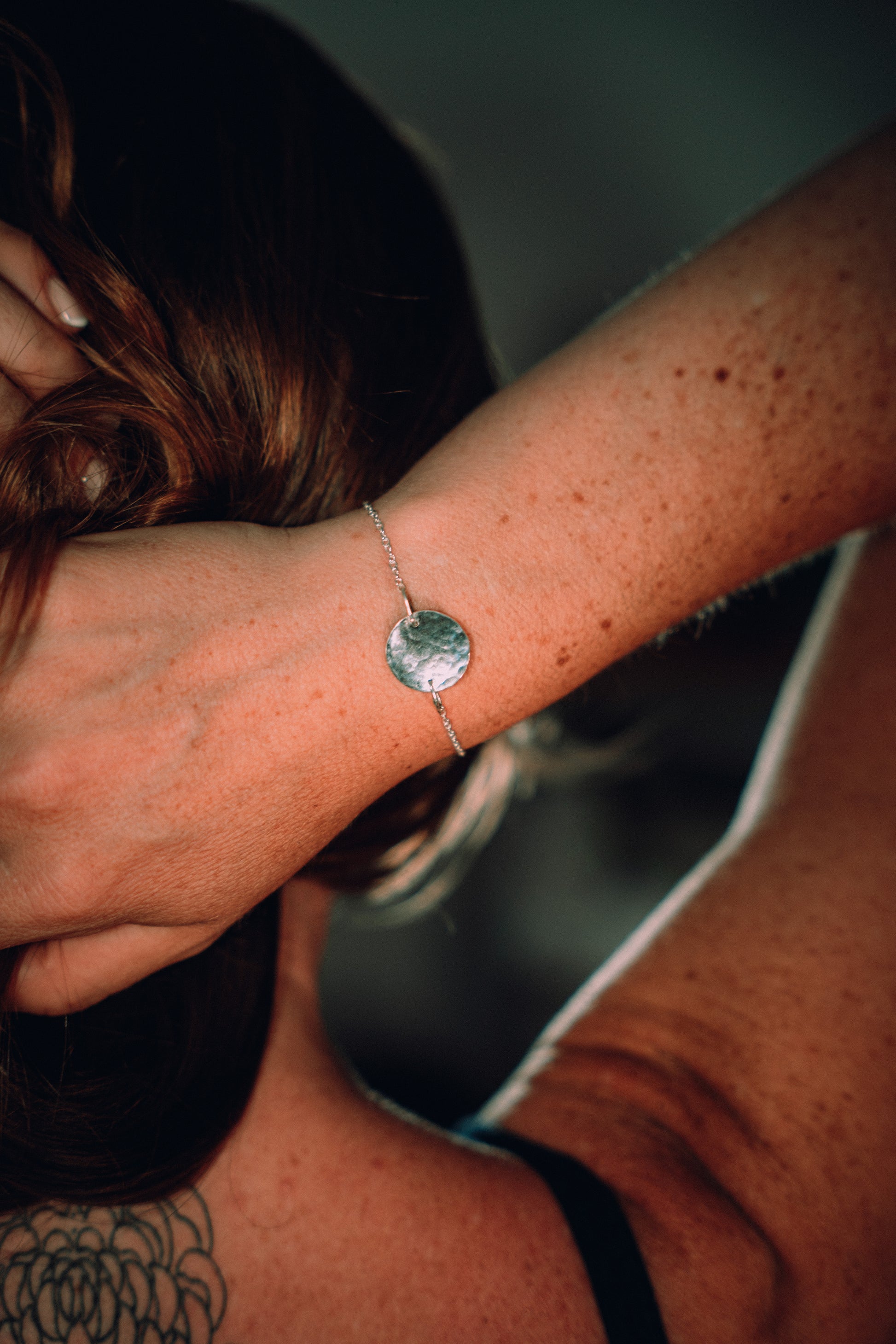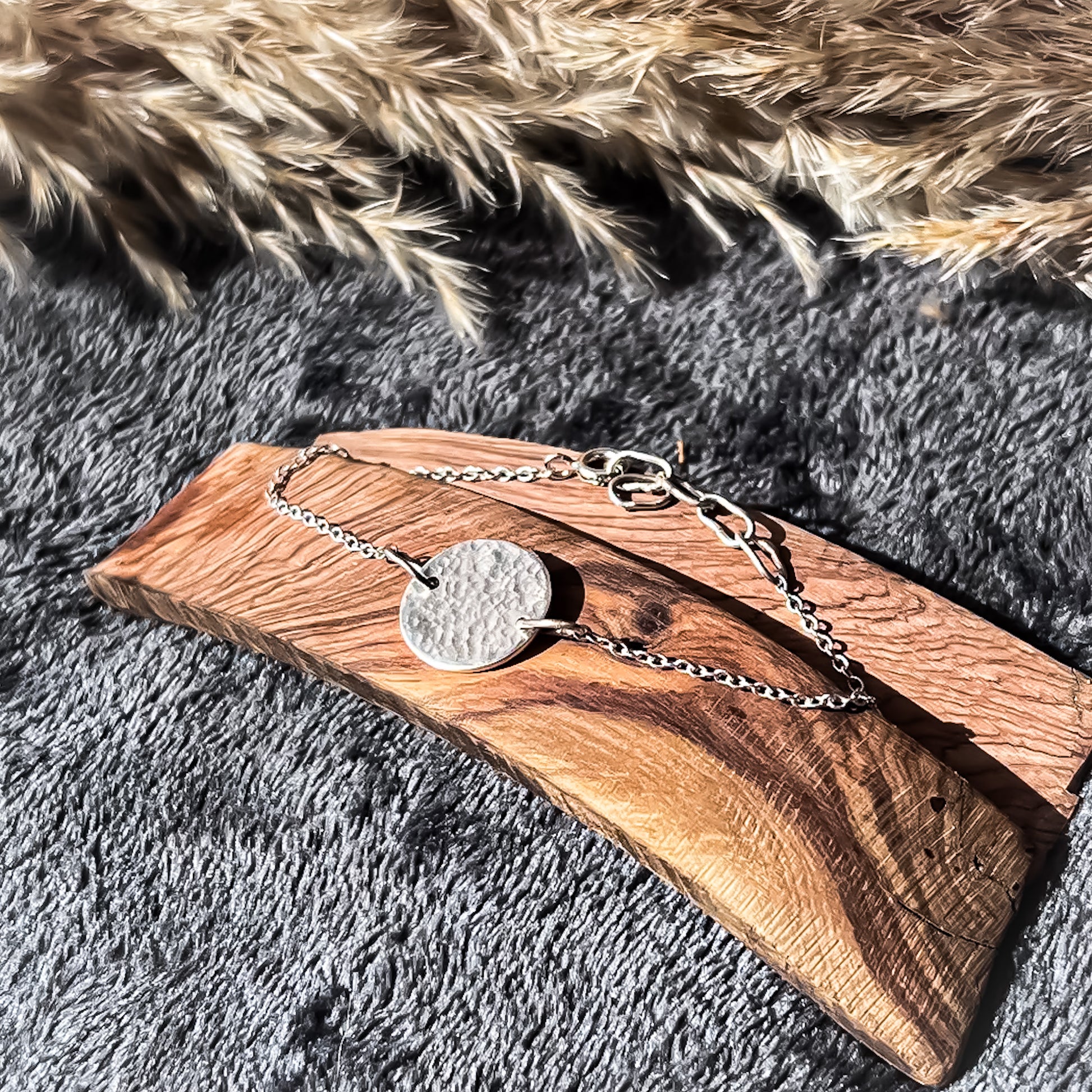 - Bijou entièrement fait main à partir d'une chaine forçat en argent et d'une plaque d'agent martelée.