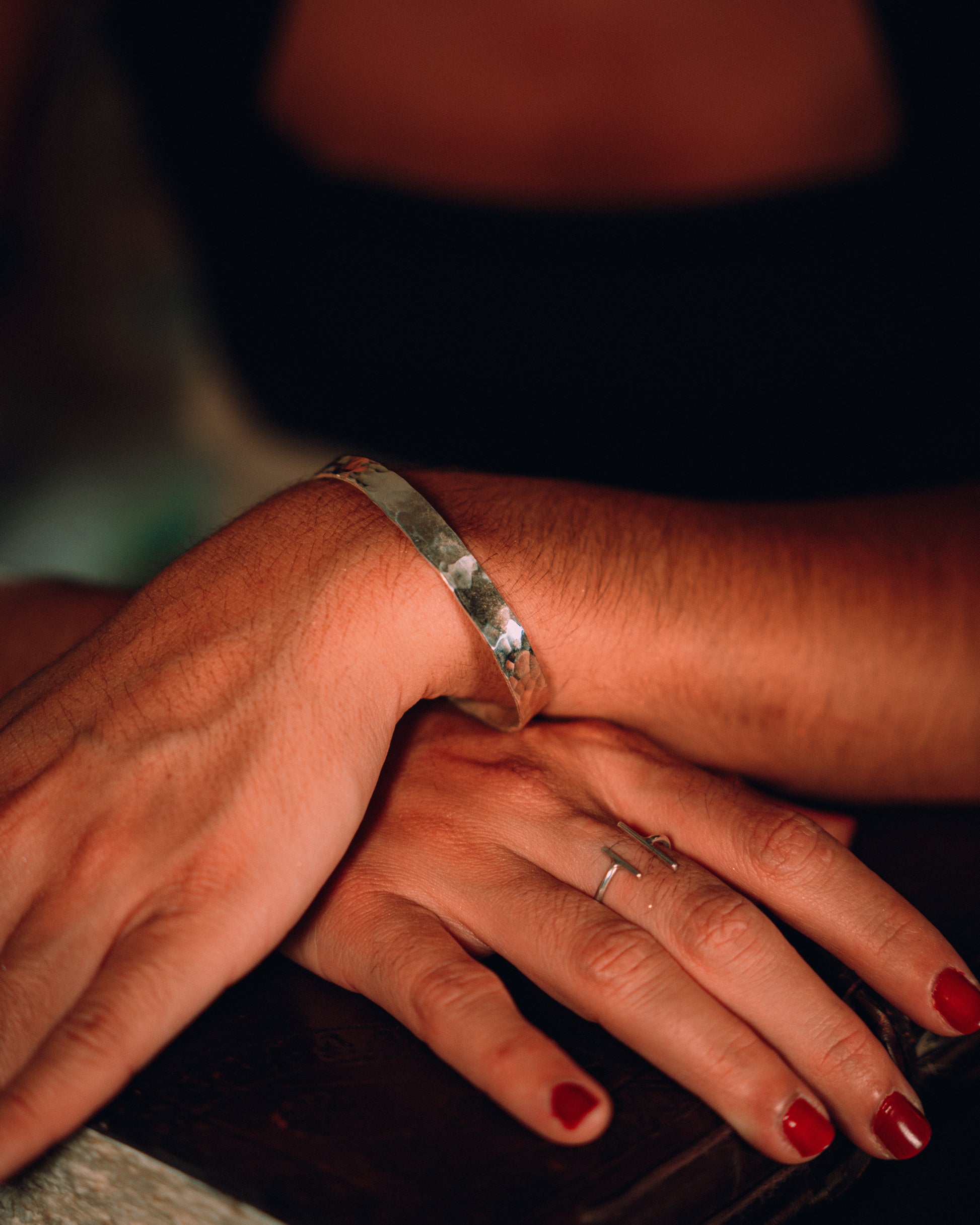 - Bijou entièrement fait main à partir d'une plaque d'argent martelée.